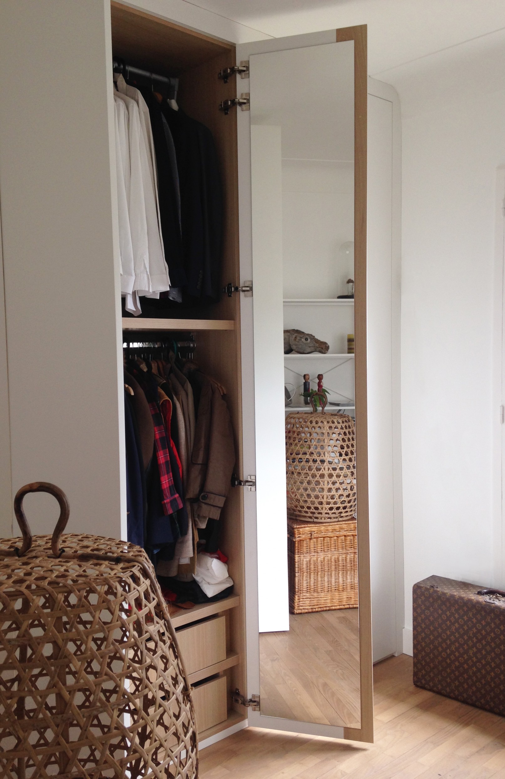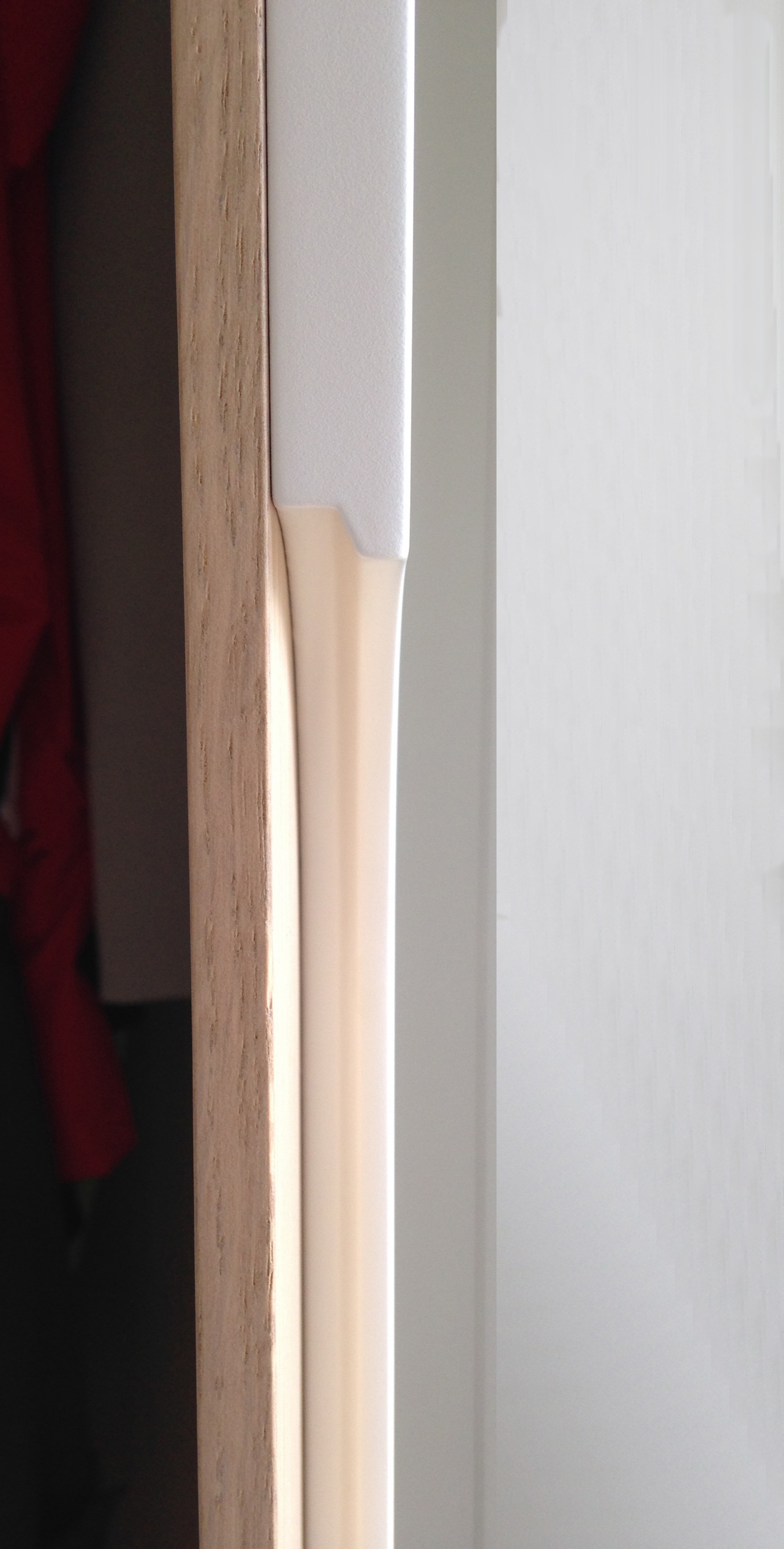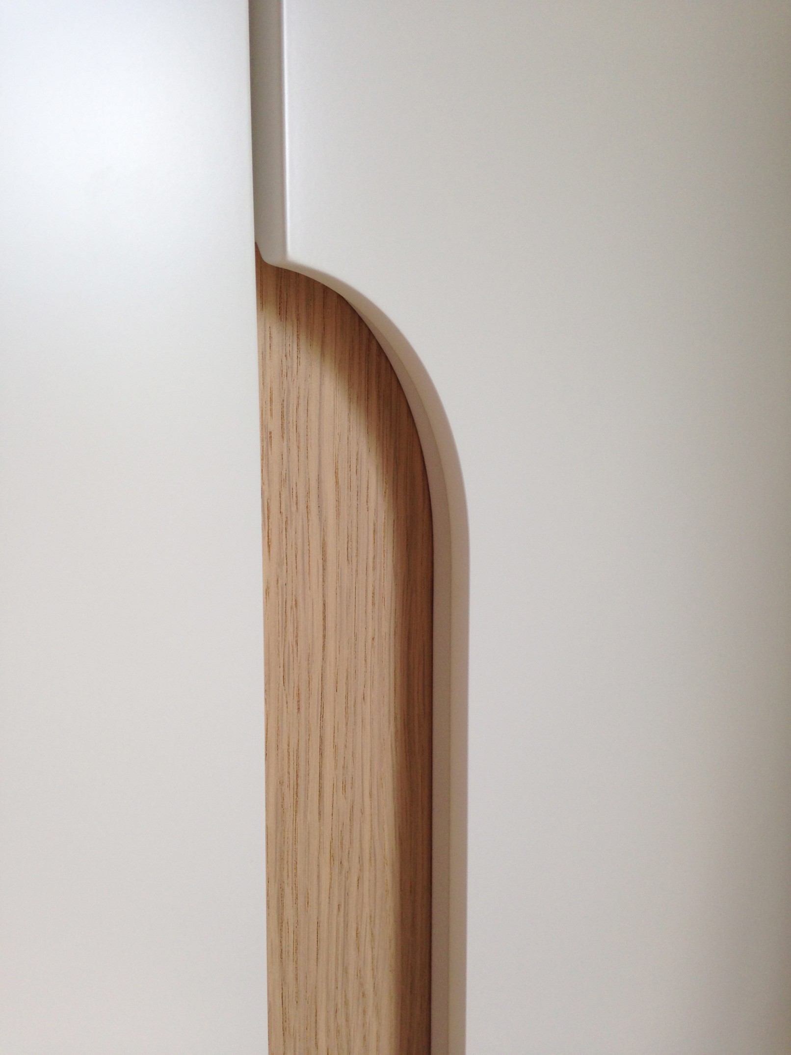 Réalisation d’un dressing dans le cadre de la rénovation d’un appartement. Ce dressing, adossé a un mur, devait épouser le plafond mouluré de l’appartement. Les prises de mains sur les portes ont été dessinés ainsi que l’aménagement intérieur du dressing. Le choix d’une prise de main en bois et d’un dressing blanc est en accord avec les tonalités du restes de l’appartement.
