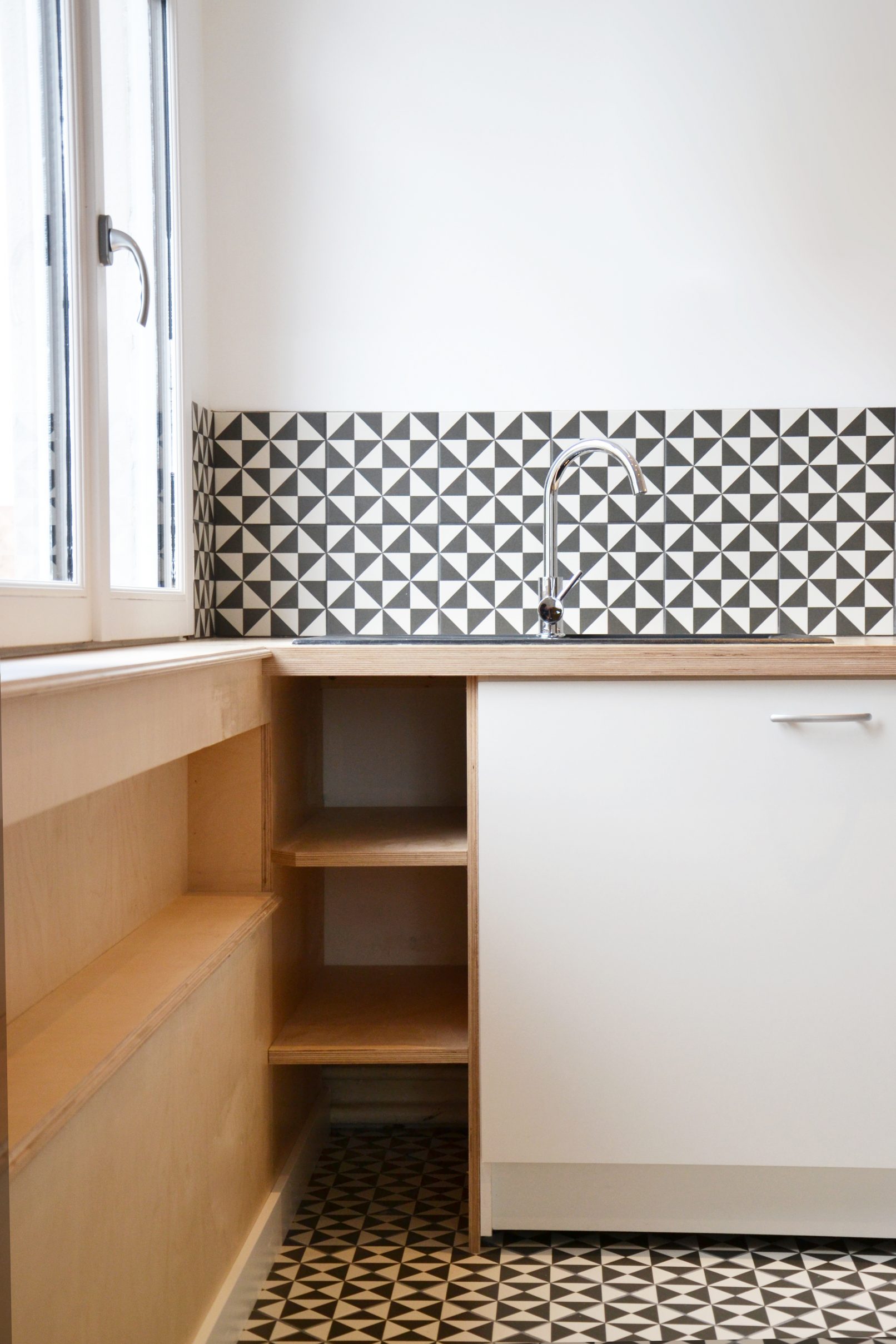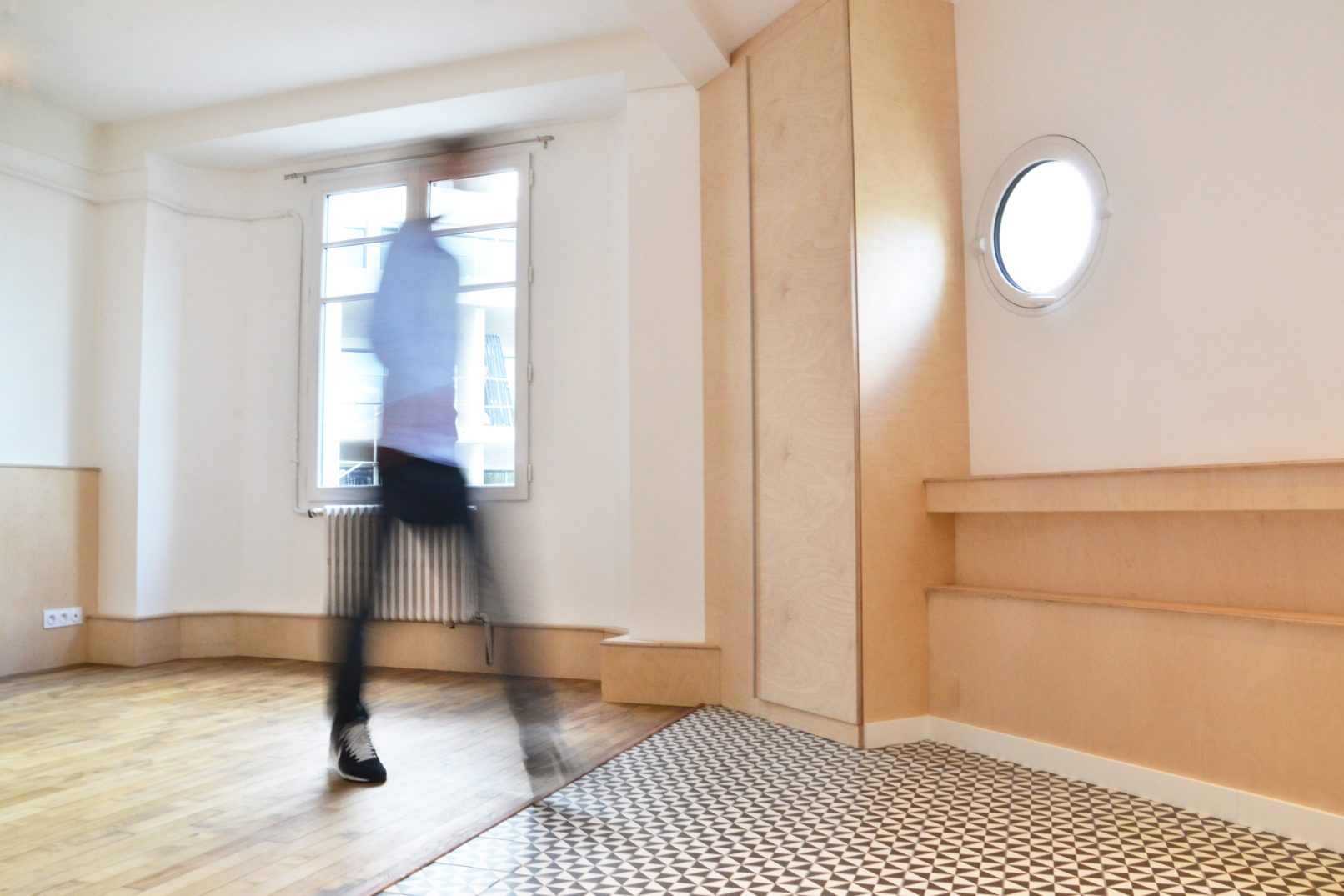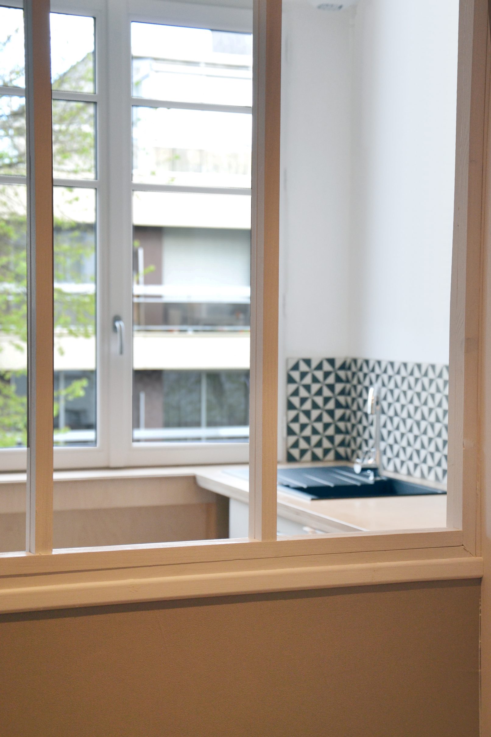 Un appartement desservi en étoile, 3 pièces de dimension équivalentes sans qualité, des années sans voir un pinceau de peinture.  Le projet consistera à ouvrir la piece de vie, créer de l’espace, donner une qualité aux pieces existantes, créer de nombreux rangements. C’est une rénovation « petit budget » (Surface 45 m2 / Budget 30000 € ), pour laquelle il a fallu se montrer astucieux car tous les postes ont été impactés par la rénovation.
